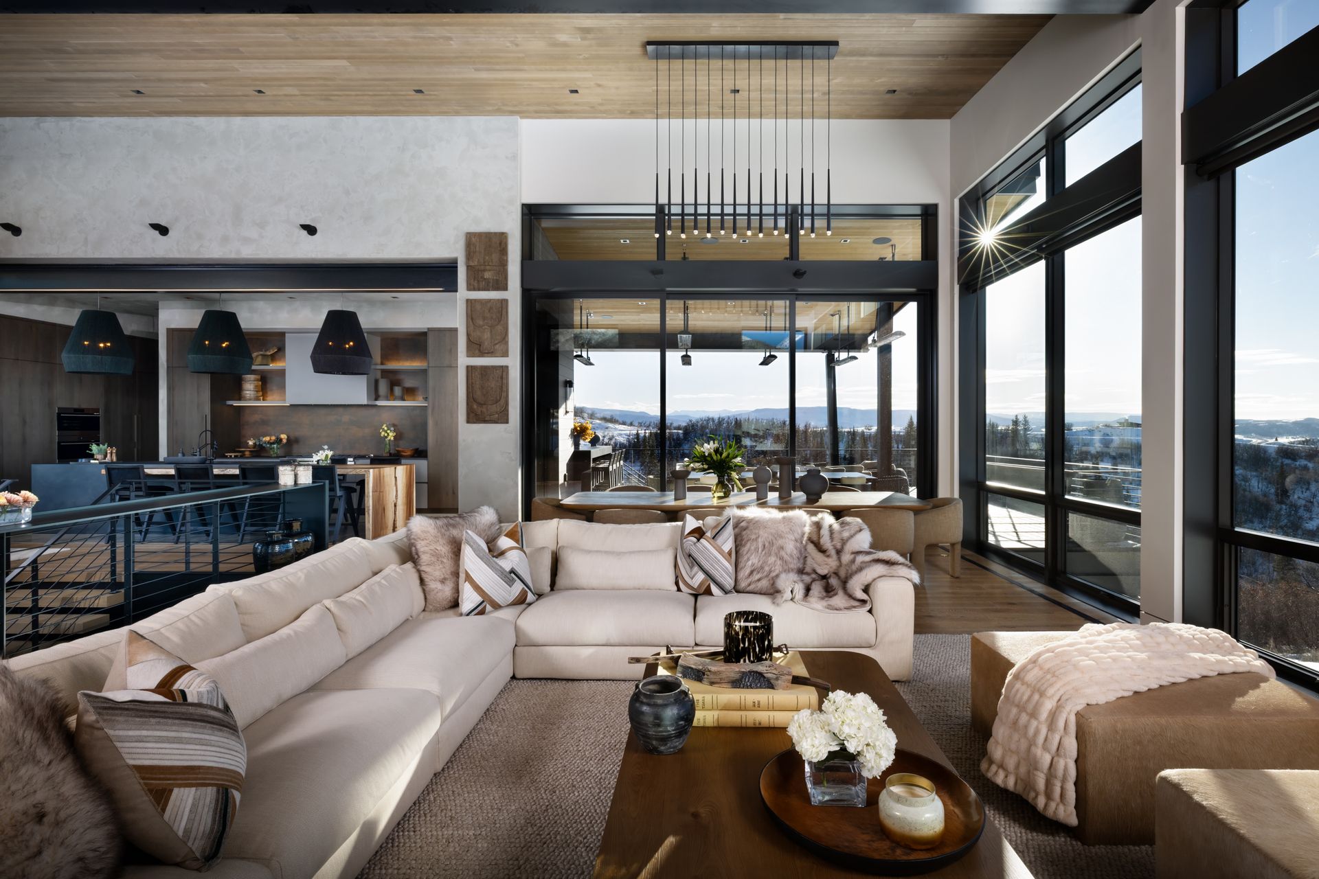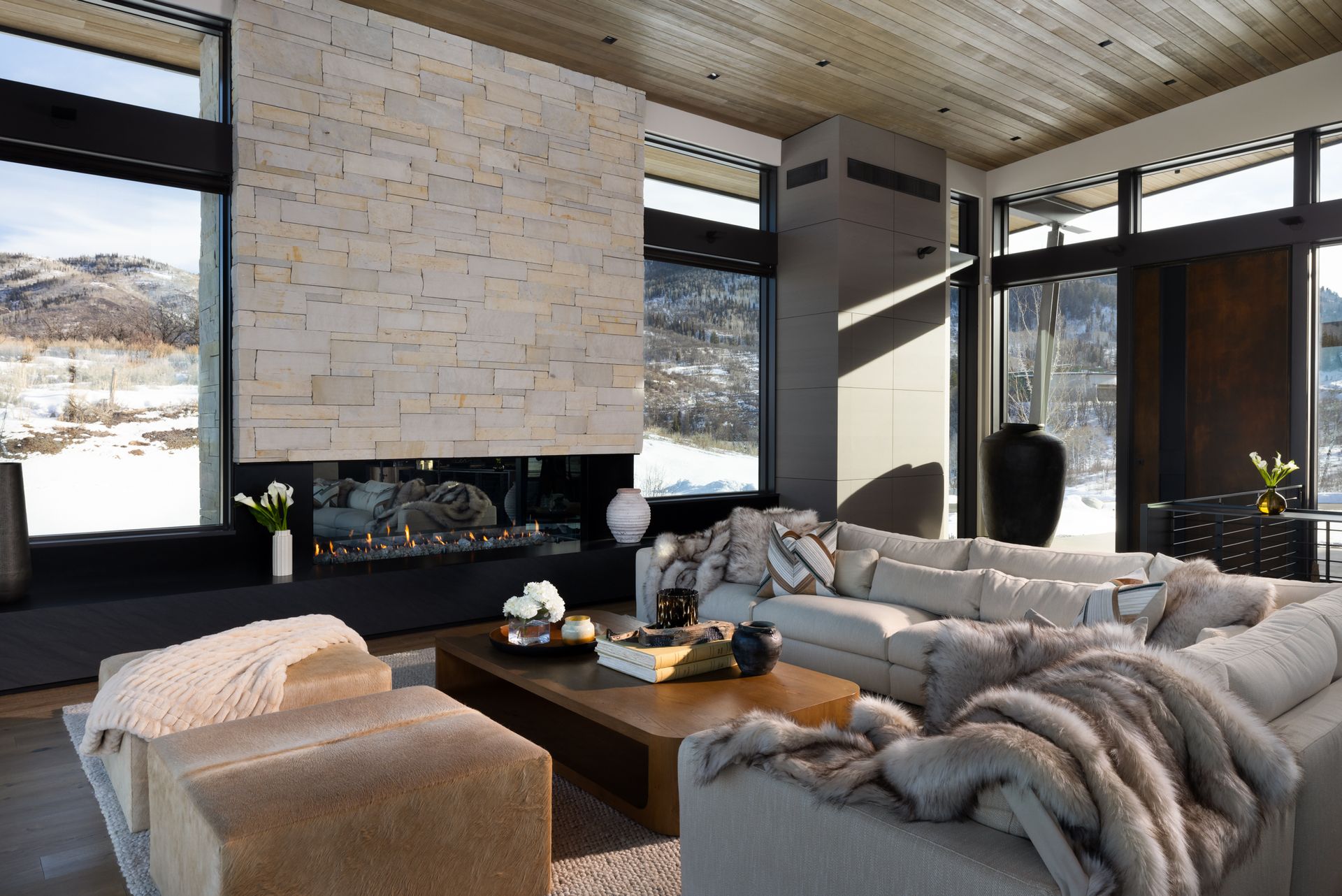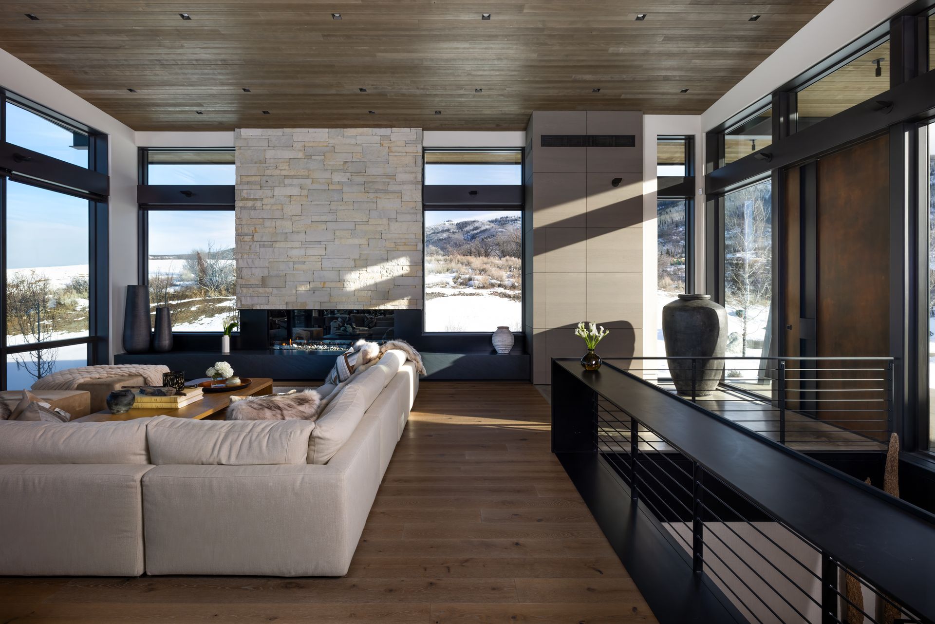 Set on a remarkable homesite with sweeping 360-degree views, the Alpine Mountain Ranch was designed to fully embrace its surroundings while creating a comfortable retreat for a multi-generational family. The 6,800 square foot home includes five bedrooms and reflects a mountain modern style with warm materials, wood floors and ceilings, expansive windows, and natural stone that connect the home to the surrounding landscape.