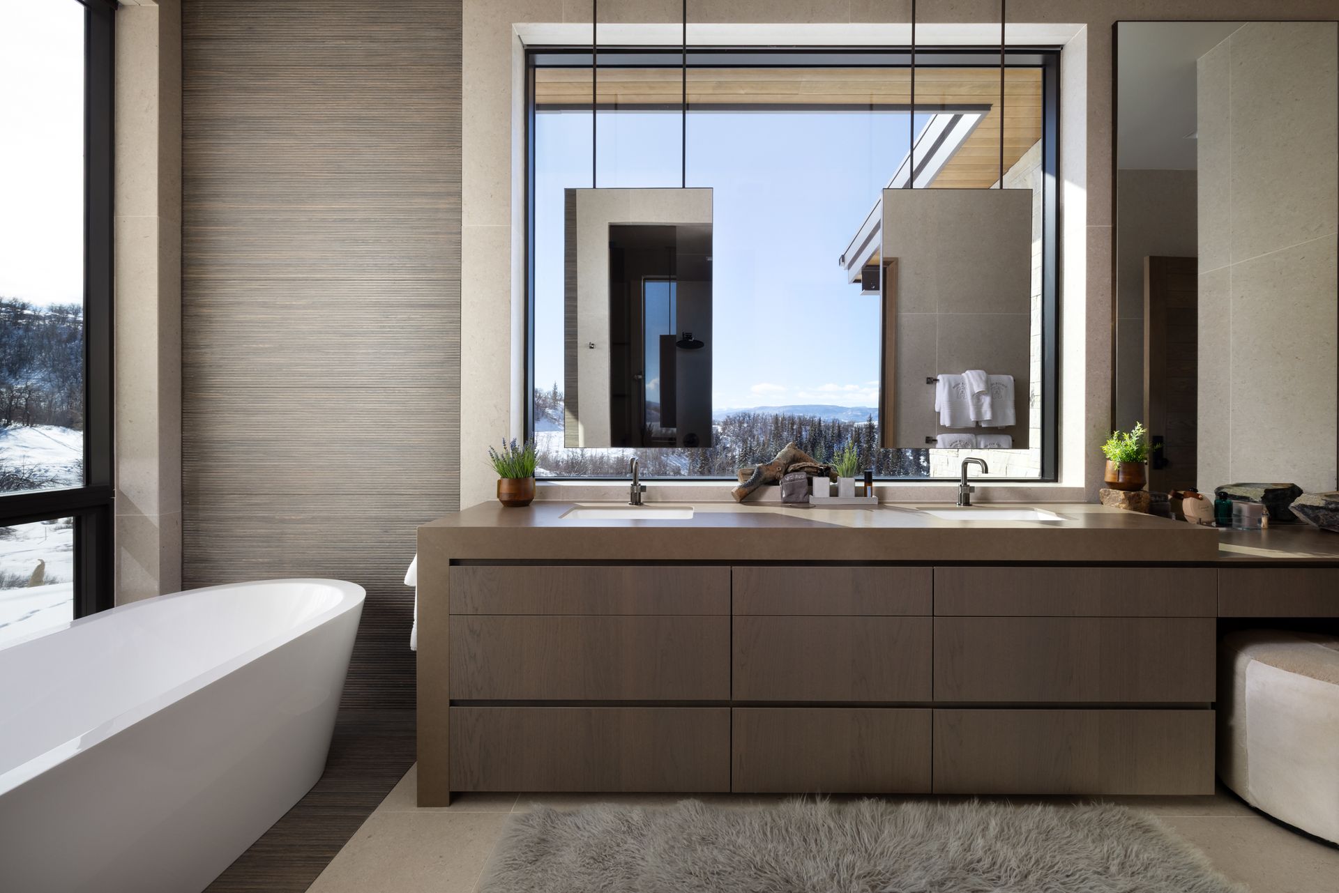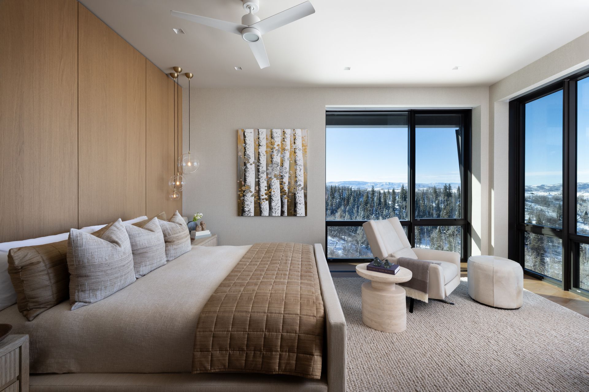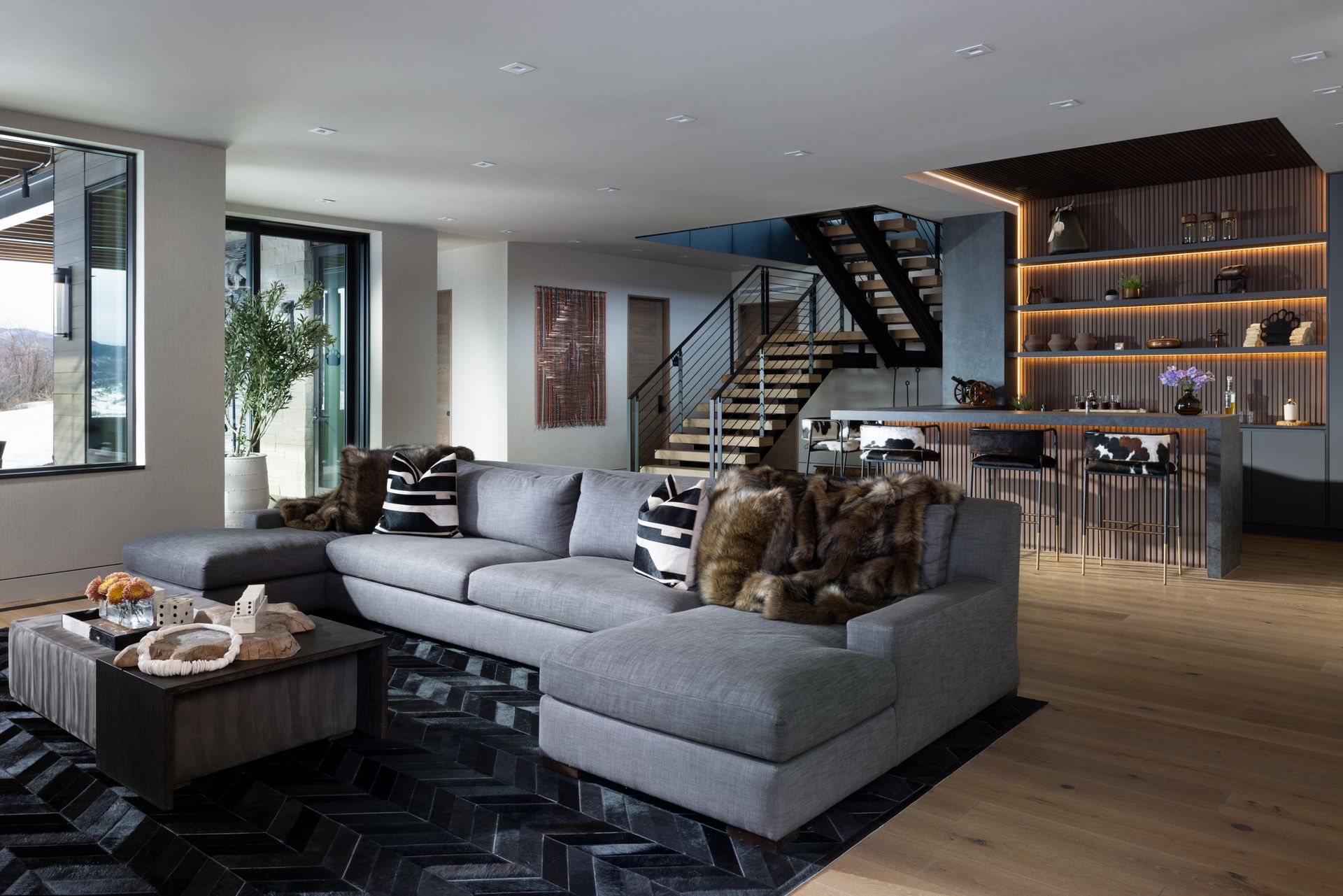 Set on a remarkable homesite with sweeping 360-degree views, the Alpine Mountain Ranch was designed to fully embrace its surroundings while creating a comfortable retreat for a multi-generational family. The 6,800 square foot home includes five bedrooms and reflects a mountain modern style with warm materials, wood floors and ceilings, expansive windows, and natural stone that connect the home to the surrounding landscape.