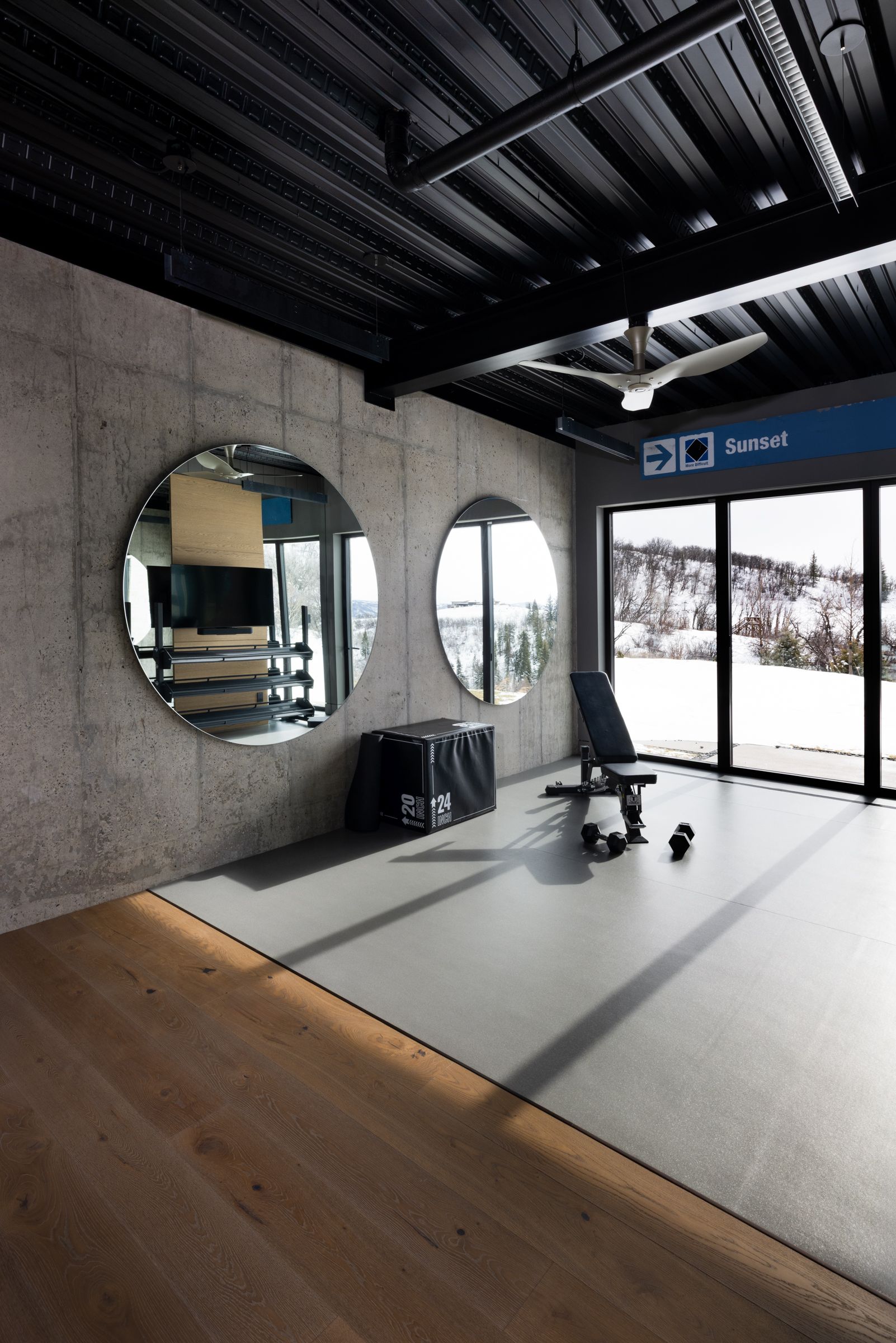 Designed to support multiple generations, the home balances shared spaces with areas for privacy and retreat. The great room serves as the main gathering space, while additional rooms including a family room with a tv area, pool table and bar, a flexible gym that can convert into a bedroom, and a dedicated Zoom Room provide space for work, recreation, and quiet moments. The primary suite is positioned along the southern edge of the home, creating a private retreat with beautiful down-valley views.