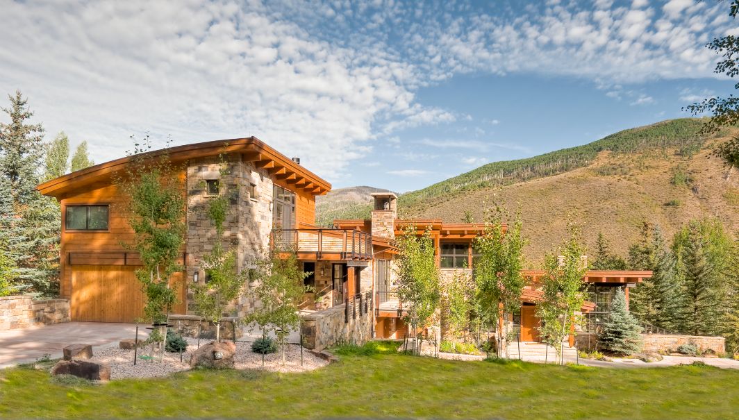 This mountain modern home is composed of a series of curved and low slope shed roofs supported by stone walls and an exposed steel and timber frame structure. The play of the stone and stepping roof forms break down the scale of the home and integrates the house into site. The curved roofs open up towards the views and light while the large overhangs shelter the house from the summer sun and significant winter snow. Large steel window walls and sliding door systems provide near transparency and strong indoor-outdoor connections. Super insulated pre-manufactured curved and flat structural insulated foam panels were utilized in the roof while recycled cellulose insulation was used in the walls. The mix of refined natural materials and clean detailing creates a sophisticated mountain retreat.