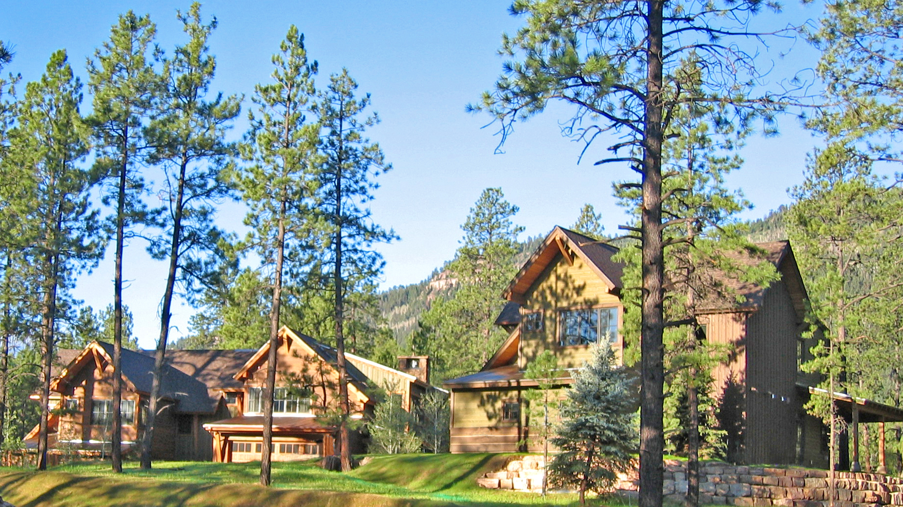 Inspired by western mountain lodges of the National Parks, these homes incorporate an additive massing design utilizing a palette of natural rustic materials derived from the surrounding landscape. They appear to have evolved over time, with the stone clad steep roofed elements with smaller windows contrasting to the additive timber frame glass walled great room elements. The western inspired design, the palette of natural materials and the large windows provide a strong physical and intellectual connection to the "New West". Hans Berglund master planned and designed these projects while with CCY Architects.