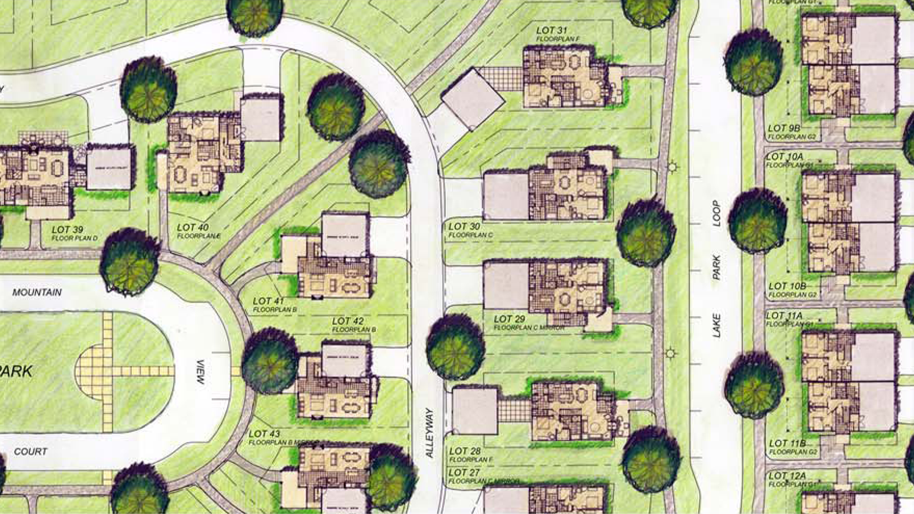 Berglund Architects envisioned the architectural character, developed six concept prototype house designs and provided feedback on site plan layout and lot sizes for this 55-unit new urbanism development adjacent to the historic "Old Town" Whitefish. The architecture represents a modern day interpretation of the historic Victorian homes in Whitefish. Front porches face the street and garages are recessed to the sides or are located behind the homes and served by alleys. The prototype homes ranged from 3-bedroom 2-bath 1,690 SF to 2,053 SF 4-bedroom 3-bath, although most of the plans were approximately 1,750 to 1,850 SF 3-bedroom 2.5-bath homes. Berglund Architects created elevation sketches and perspective drawings of the potential houses/streetscape character to illustrate the concept architectural design guideline principles. These studies became the basis of the lot sizing, building setbacks and neighborhood layouts. These sketches were a critical component of the developers' successful approval process presentations and sale of the entire project after receiving entitlements. All of these sketches were created in less than a month following a collaborative two day on site work session/charrette with the developers.