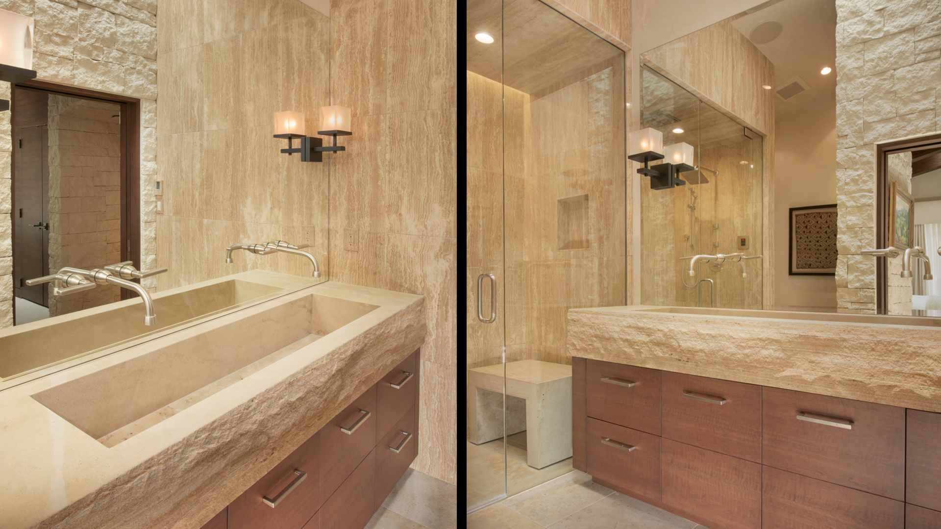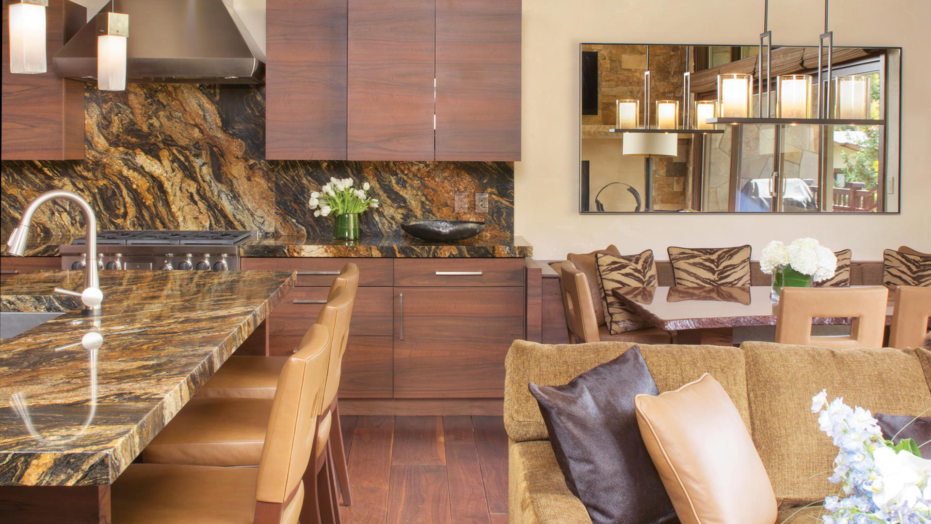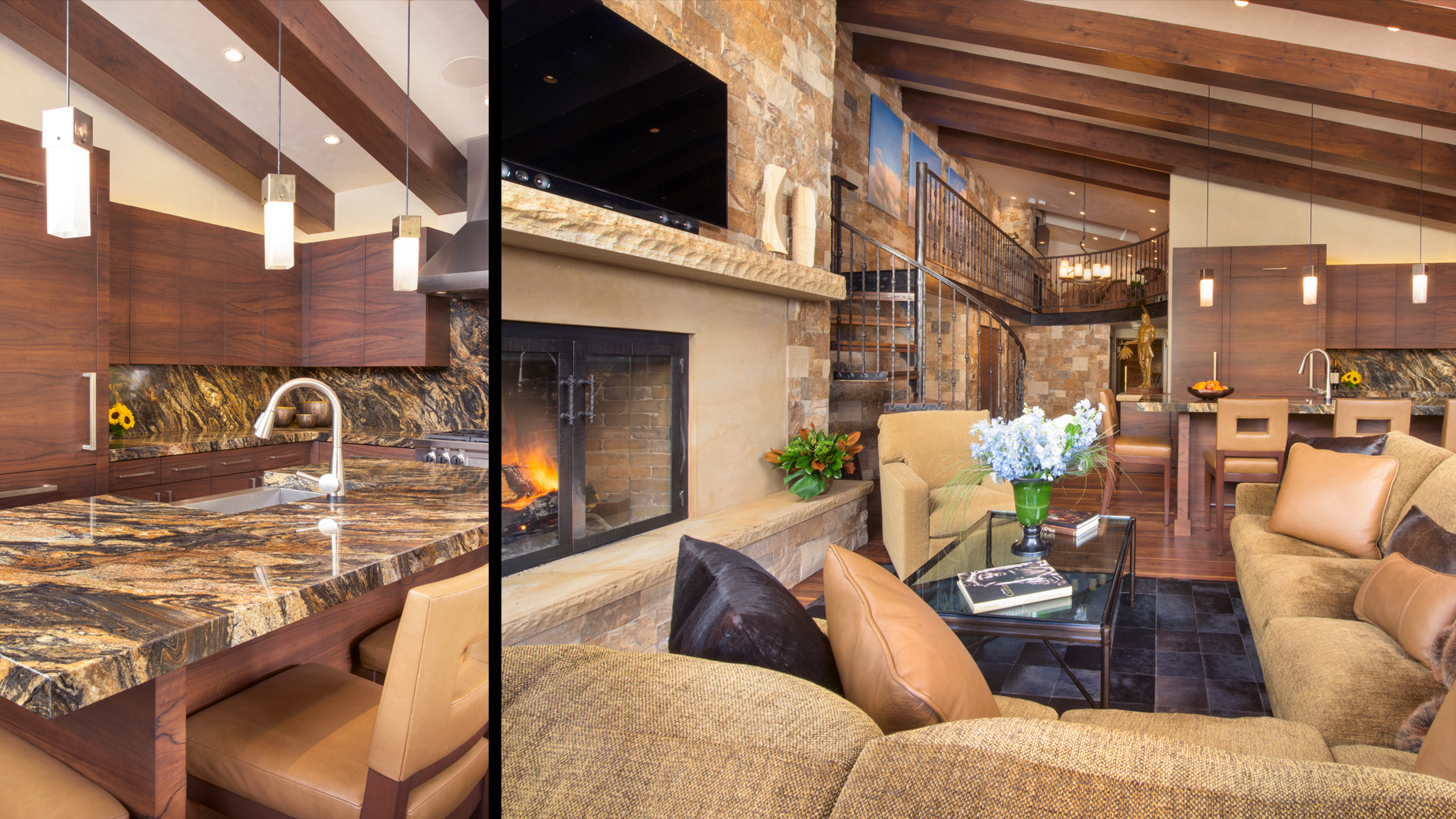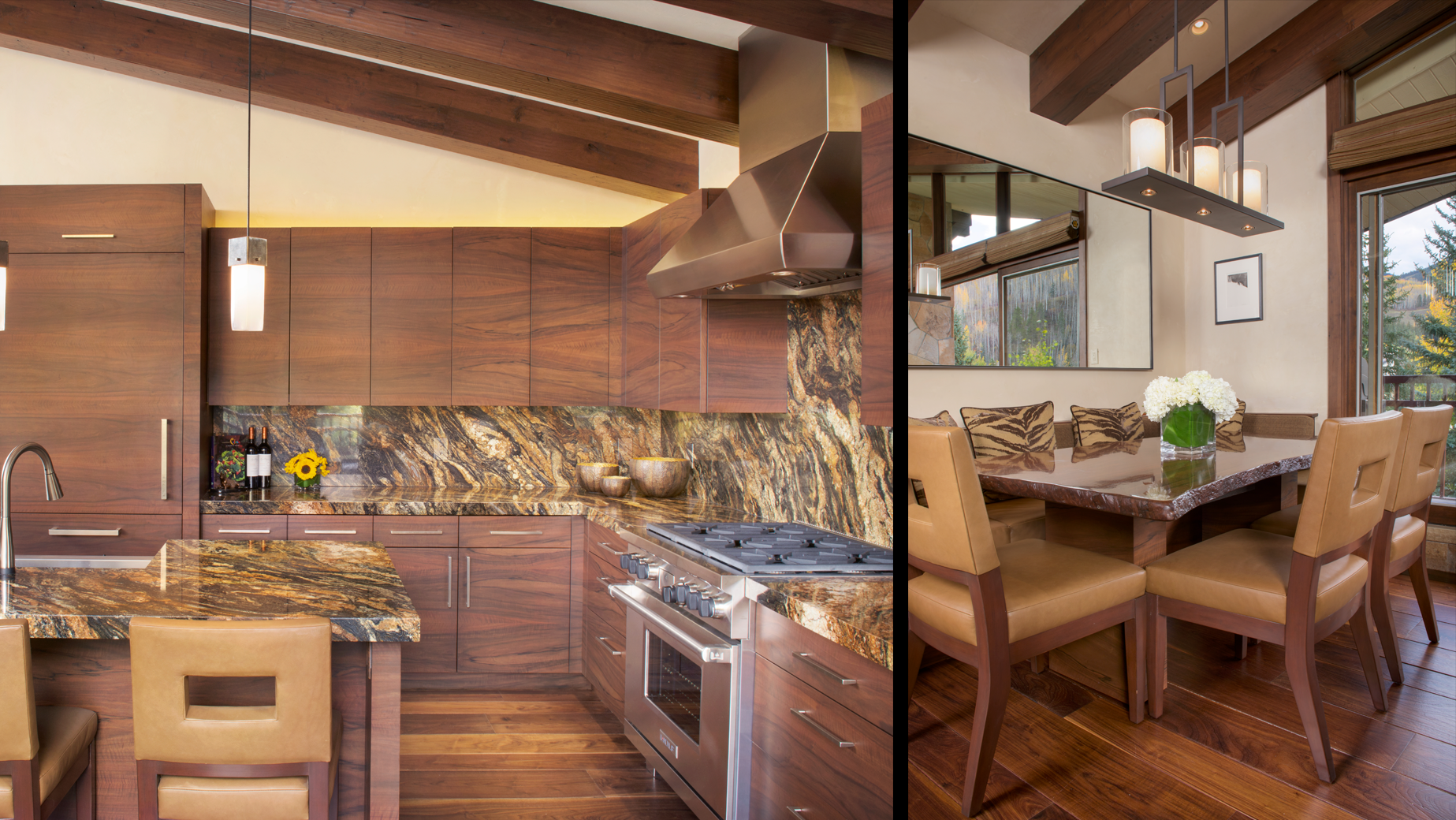 The client’s goal, on this transformational remodel of a 40 year old 1,000 SF 2 bedroom 2 bath condominium in the heart of Vail Village, was to reconfigure the entire unit to make it light filled and open and to utilize every square inch to maximize living and storage. We changed floor heights and completely reconfigured the living spaces to create an open great room with a very space efficient and cozy built in dining area that made room for an enlarge kitchen island for gathering and entertaining and a seating area focused on the rebuilt fireplace. Working with an exceptional design and construction team, we carefully studied every cabinet, banquet, built in bed, niche and closet to maximize space as one would do designing a boat, and cleanly detailed the palette of warm natural materials to create an inviting yet sophisticated mountain retreat.