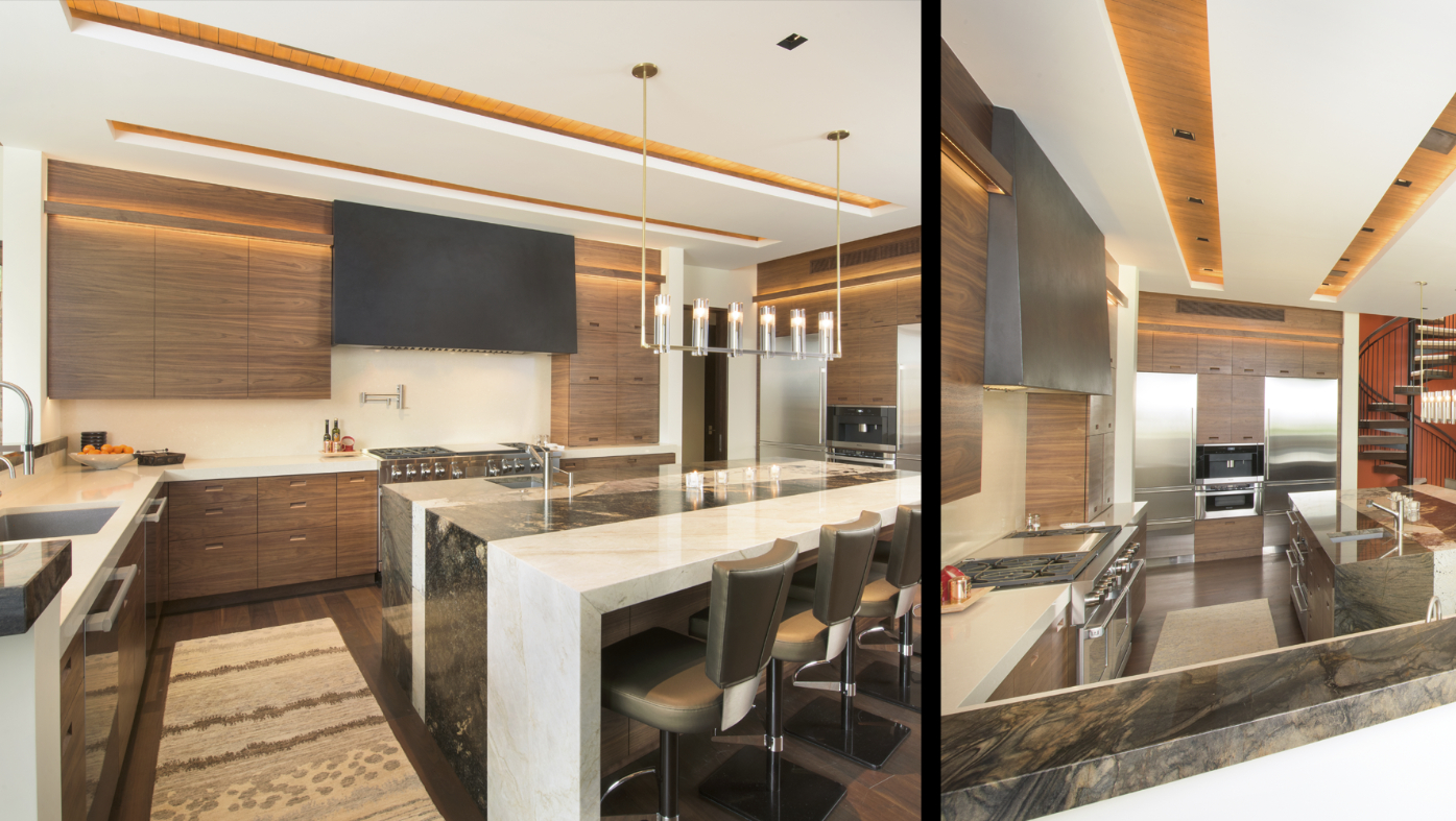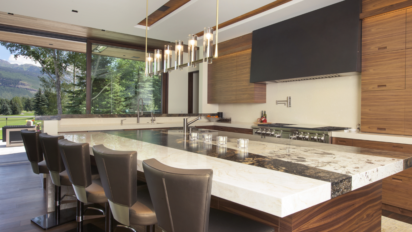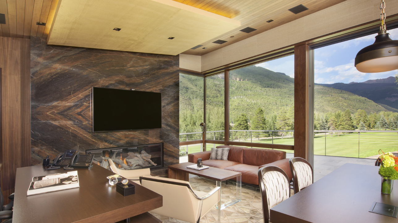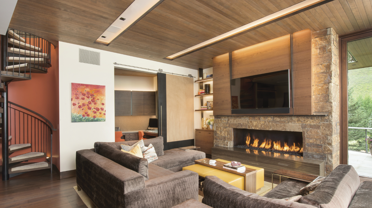 This 10,000 SF single family home was designed as a full-time residence for an active family with school aged children. The 6 bedroom, 8 ½ bathroom mountain contemporary home features a natural material palette that includes local stone, reclaimed wood siding, and copper paneling. Sloping shed roofs were utilized to maximize the ceiling heights at all levels and create the house’s unique and playful massing. The large wall openings at the lower and main levels contain lift and slide doors that are some of the largest single door panels available today. These openings provide the connection to the outdoors that allows the indoor living space to flow naturally to a generous deck at the main level and a pool area at the lower level. These exterior spaces showcase covered dining areas, a custom stainless steel spa, a large pool, and an outdoor television.
